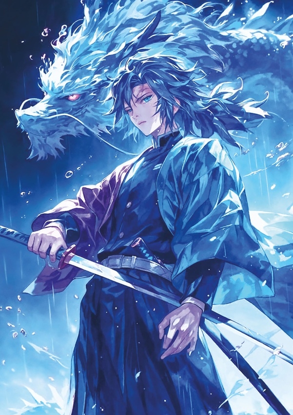 Art Puzzle verticale puzzel van 1000 stukjes met op de puzzel een stoere blauwe krijger met zwaard en draak. Afmetingen puzzel: 48 x 68 cm.