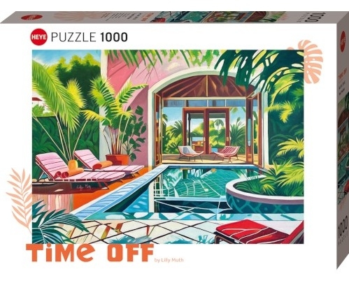 Heye legpuzzel van 1000 stukjes uit de Time Off serie met op de puzzel een heerlijk tropisch zwembad om bij te komen van de drukte, artiest Lilly Muth. Afmetingen puzzel: 70 x 50 cm.