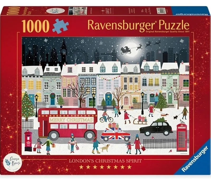Ravensburger legpuzzel van 1000 stukjes met op de puzzel Londen tijdens de kerstperiode in de sneeuw, artiest Georgia Breeze. Afmetingen puzzel: 70 x 50 cm, 1008 puzzelstukjes.