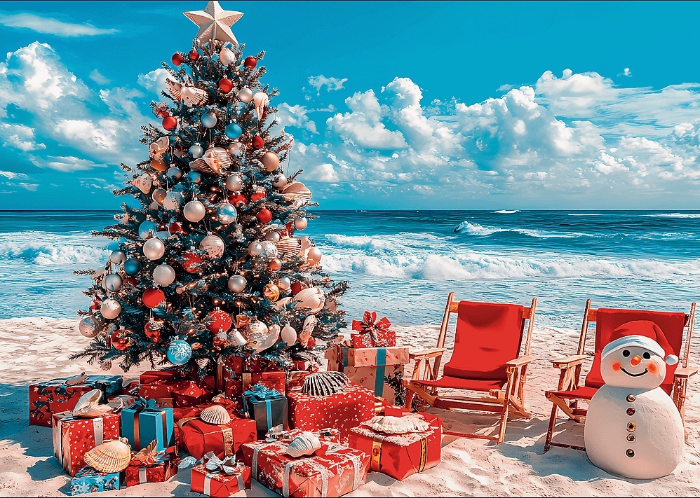 Trefl legpuzzel van 500 stukjes met op de puzzel de kerstdagen op een tropisch strand. Afmetingen puzzel: 48 x 34 cm, poster bijgesloten.
