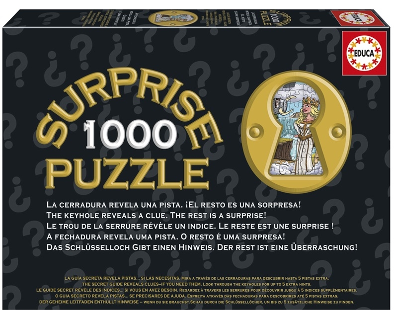 Educa legpuzzel van 1000 stukjes, surprise puzzel met op de puzzel een afbeelding in een ridderthema, in de doos een boekje met hints. Afmetingen puzzel: 68 x 48 cm.