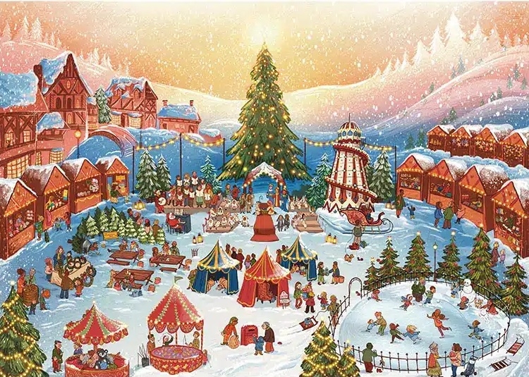Trevell legpuzzel van 1000 stukjes met op de puzzel een gezellige dorpsmarkt in de herfst. Afmetingen puzzel: 68,5 x 48 cm, poster bijgesloten.