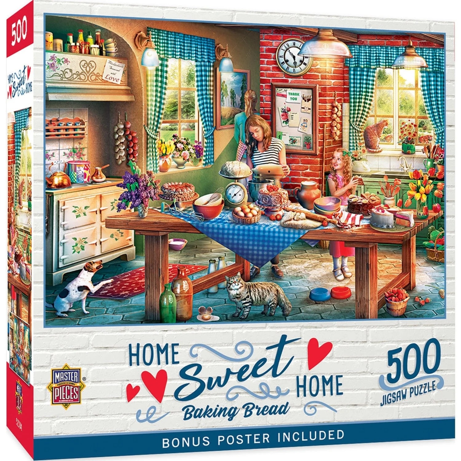 Master Pieces legpuzzel van 500 stukjes uit de Home Sweet Home serie met op de puzzel een retro keuken waar heerlijk brood gebakken wordt. Afmetingen puzzel: 53 x 38 cm, artiest Eduard.