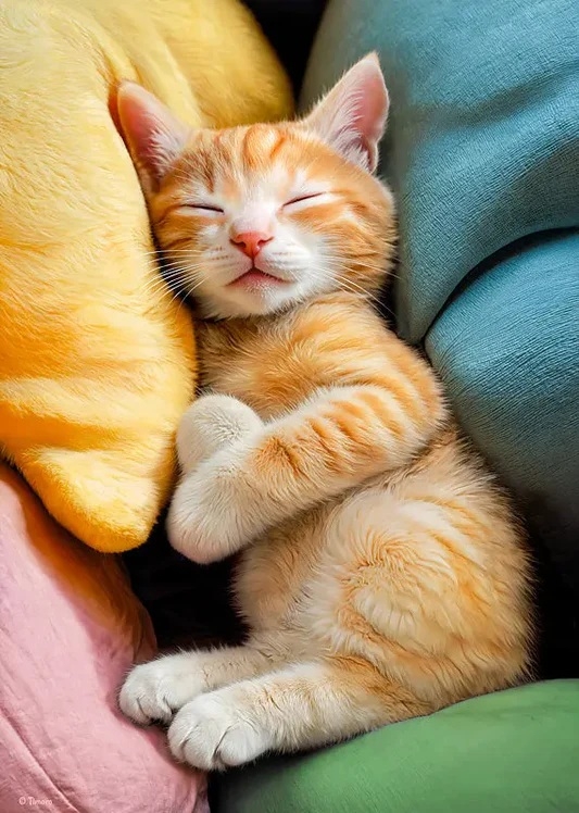 Cherry Pazzi legpuzzel van 500 stukjes met op de puzzel een schattig slapend katje. Afmetingen puzzel: 34,5 x 50 cm.