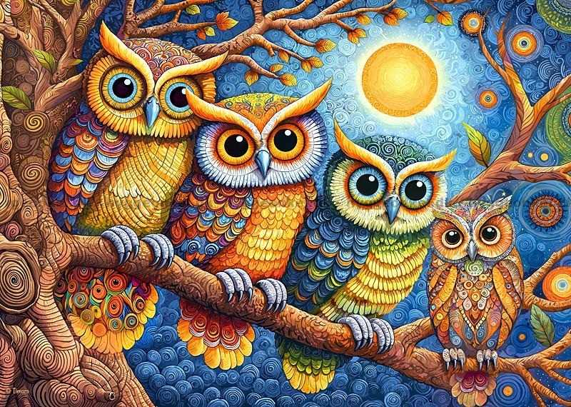 Cherry Pazzi: Moonlight Owls (500) legpuzzel - Goedkopelegpuzzels.nl, legpuzzels voor volwassenen en kinderpuzzels