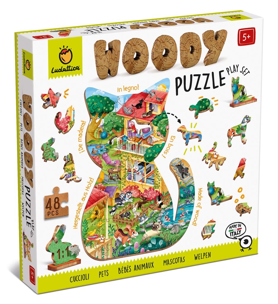 Ludattica: Woody Puzzle - Pets (48) houten kinderpuzzel - Goedkopelegpuzzels.nl, legpuzzels voor volwassenen en kinderpuzzels