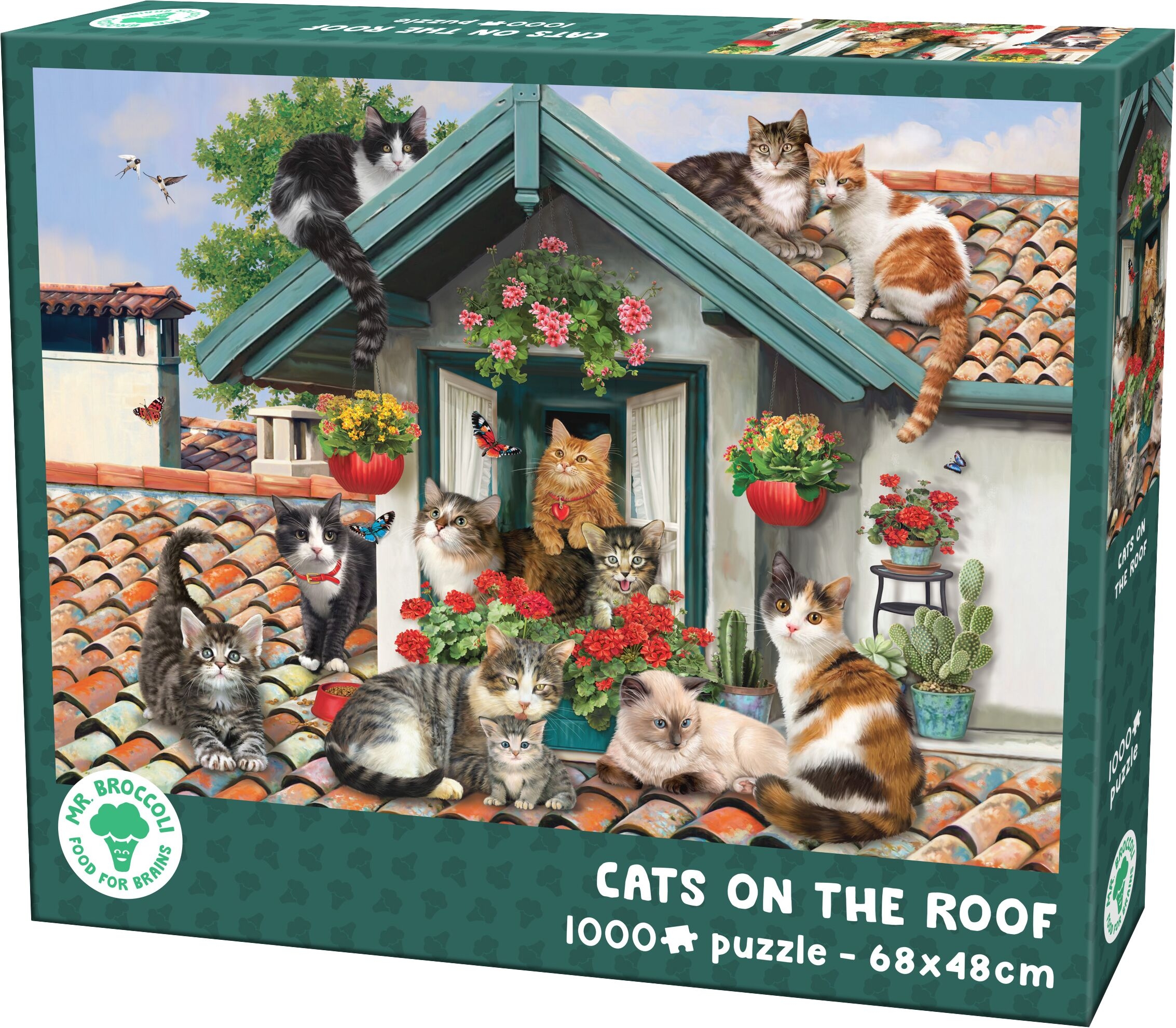 Mr Broccoli legpuzzel van 1000 stukjes met op de puzzel een dak vol katjes. Afmetingen puzzel: 68 x 48 cm.