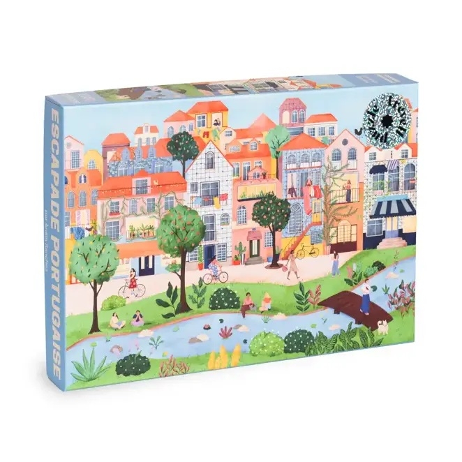 Trevell legpuzzel van 1000 stukjes met op de puzzel een Portugees stadje waar je even kunt genieten van de rust in een park aan een riviertje. Afmetingen puzzel: 68,5 x 48 cm, poster bijgesloten.