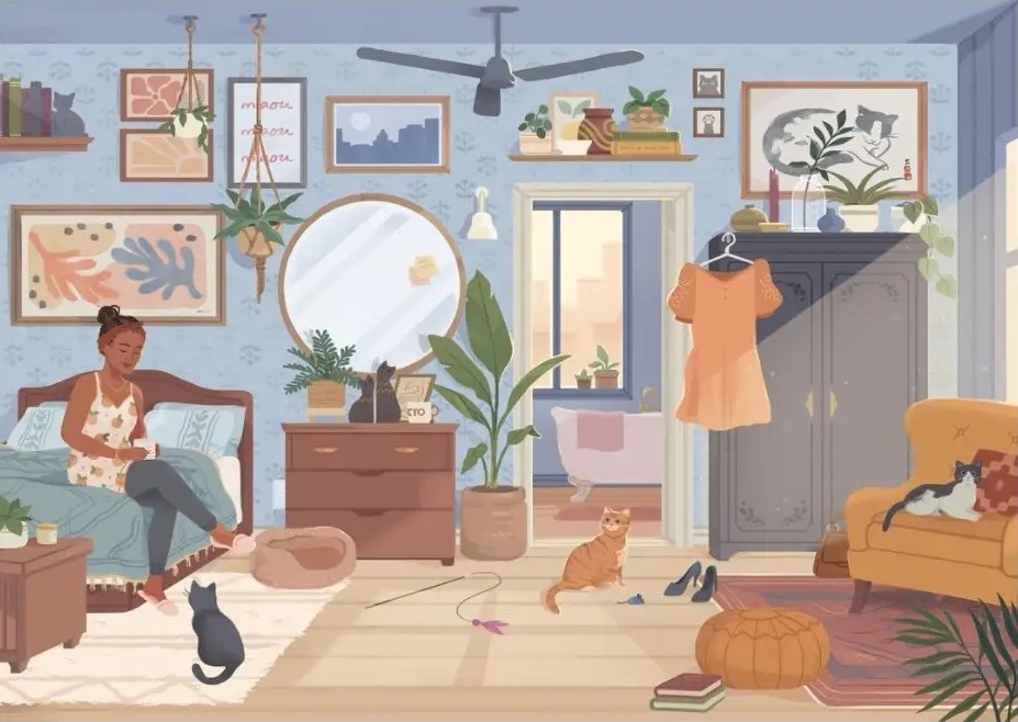 Trevell legpuzzel van 1000 stukjes met op de puzzel een relaxte zondagochtend waar iedereen rustig wakker wordt. Afmetingen puzzel: 68,5 x 48 cm, poster bijgesloten.
